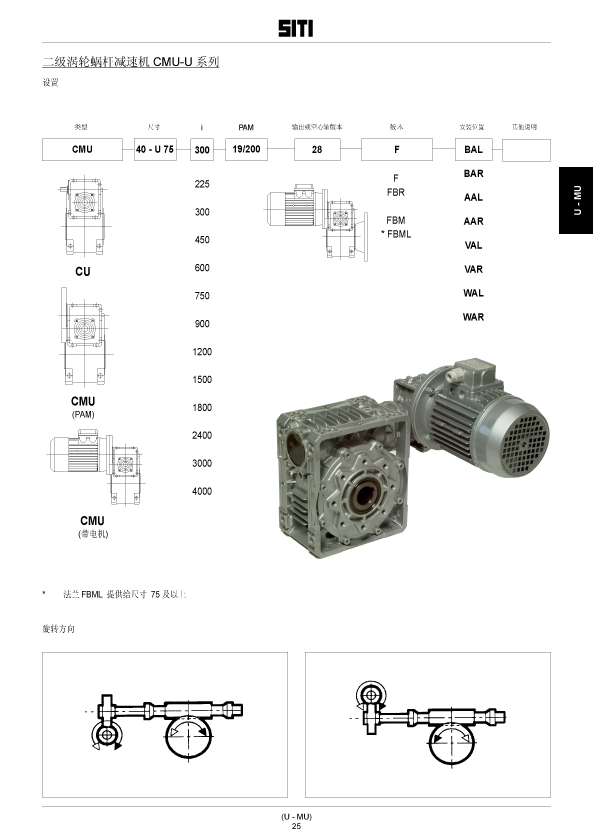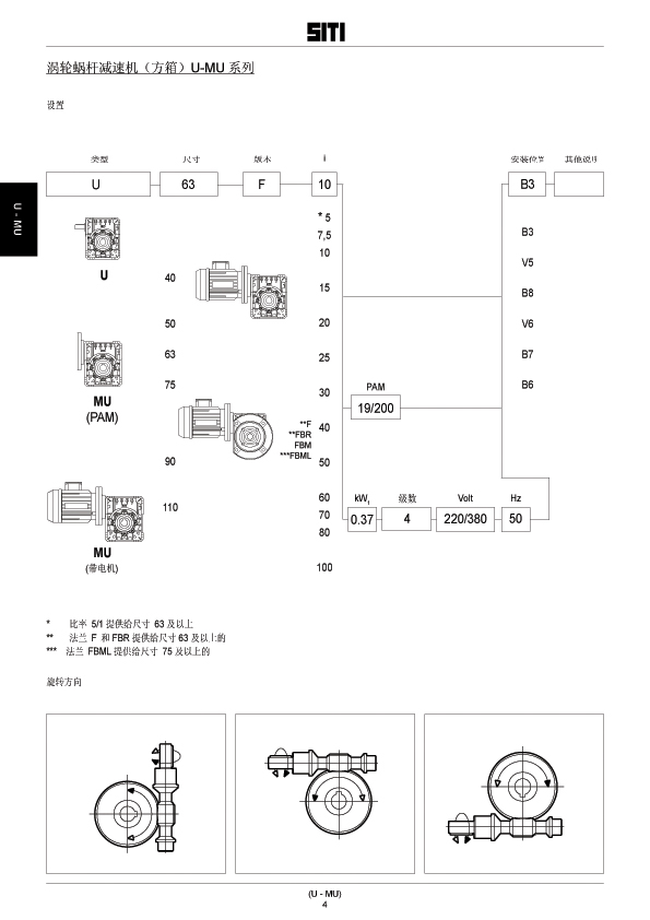 U-MU系列的所有蝸桿減速機都用SITI公司指定的一種終生潤滑油,由合成油代替一般潤滑油。使用合成油能在限定條件下更好的提高效率。