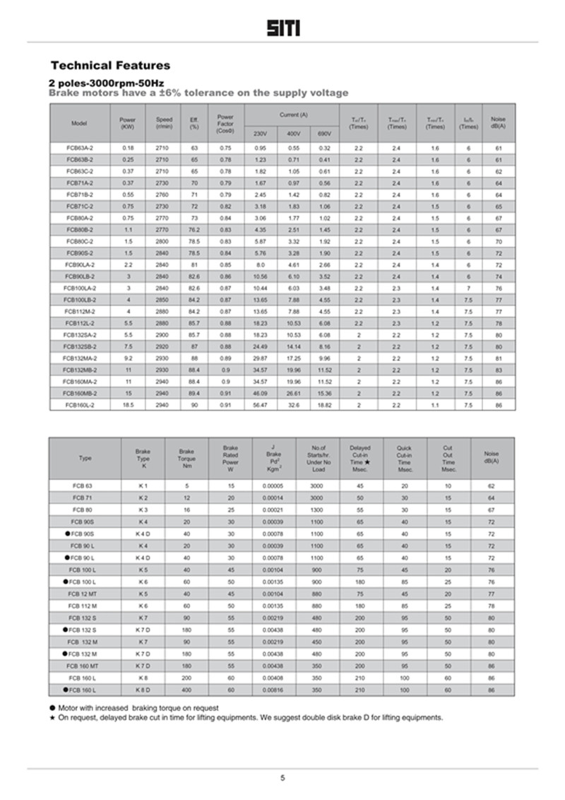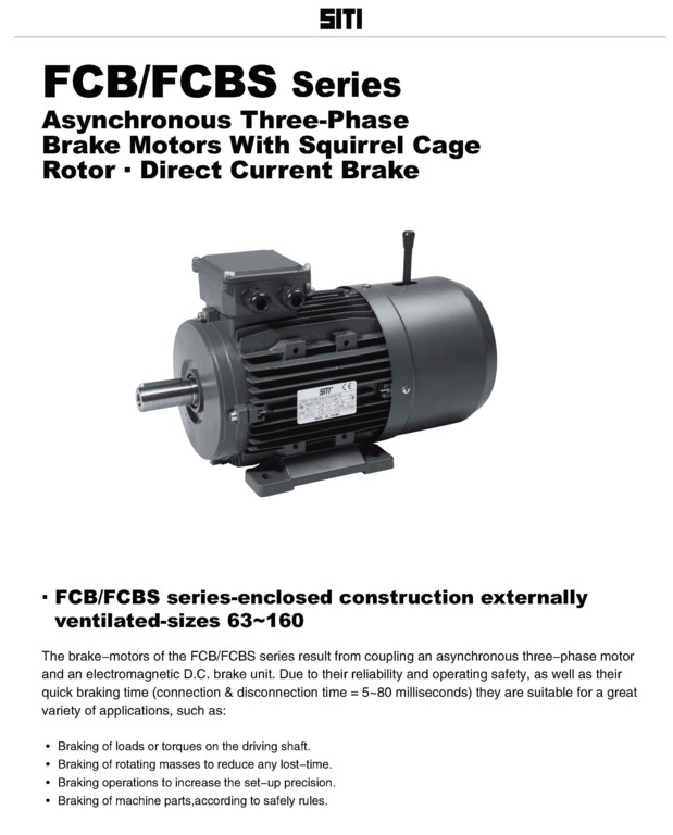 IEC標(biāo)準(zhǔn)的FCB電機(jī)遵循國際標(biāo)準(zhǔn)。功率在0.06-30KW范圍內(nèi),可地腳安裝,也可以B5或B14法蘭安裝。通常有單極和雙極電機(jī),提供了三種制動形式,一種直流和兩種交流,所有電機(jī)均可用于變頻器控制。