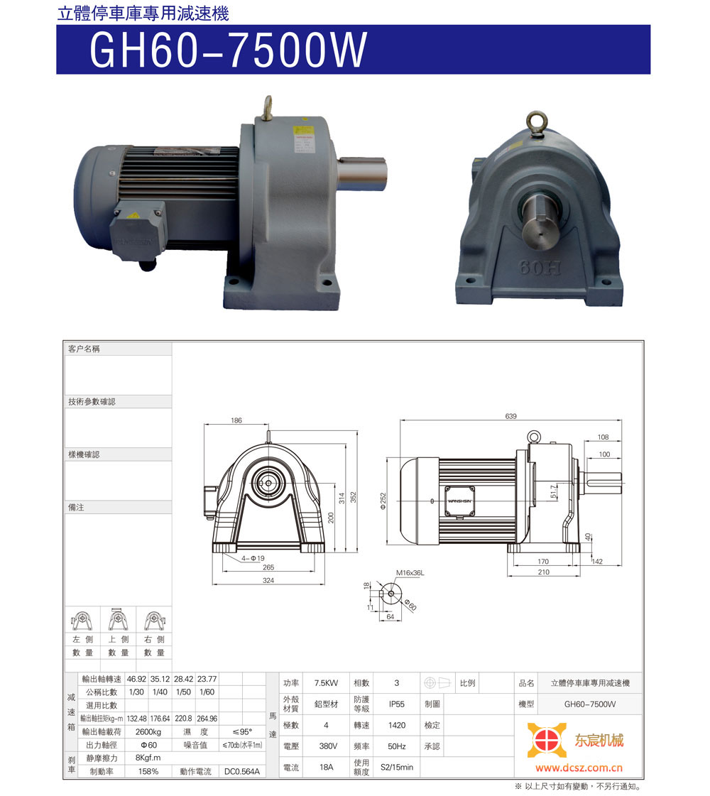 GH60-5500W/7500W立體車庫(kù)專用減速機(jī)-東宸機(jī)械